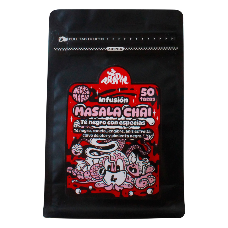 Té negro, canela, jengibre, anís estrella, clavo de olor y pimienta negra.